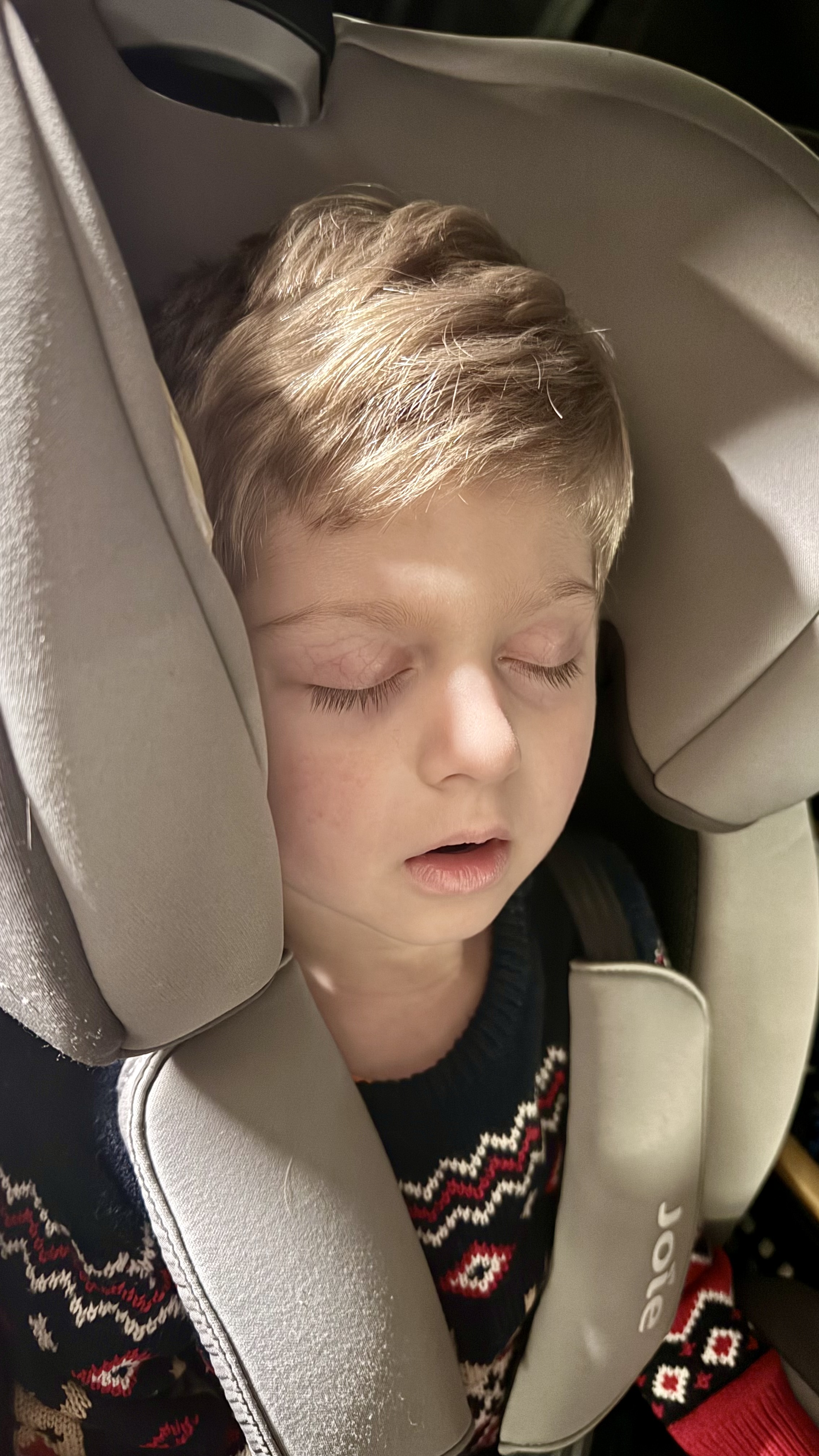 Oníček mi usnul minutu před tím, než jsme byli v cíli.